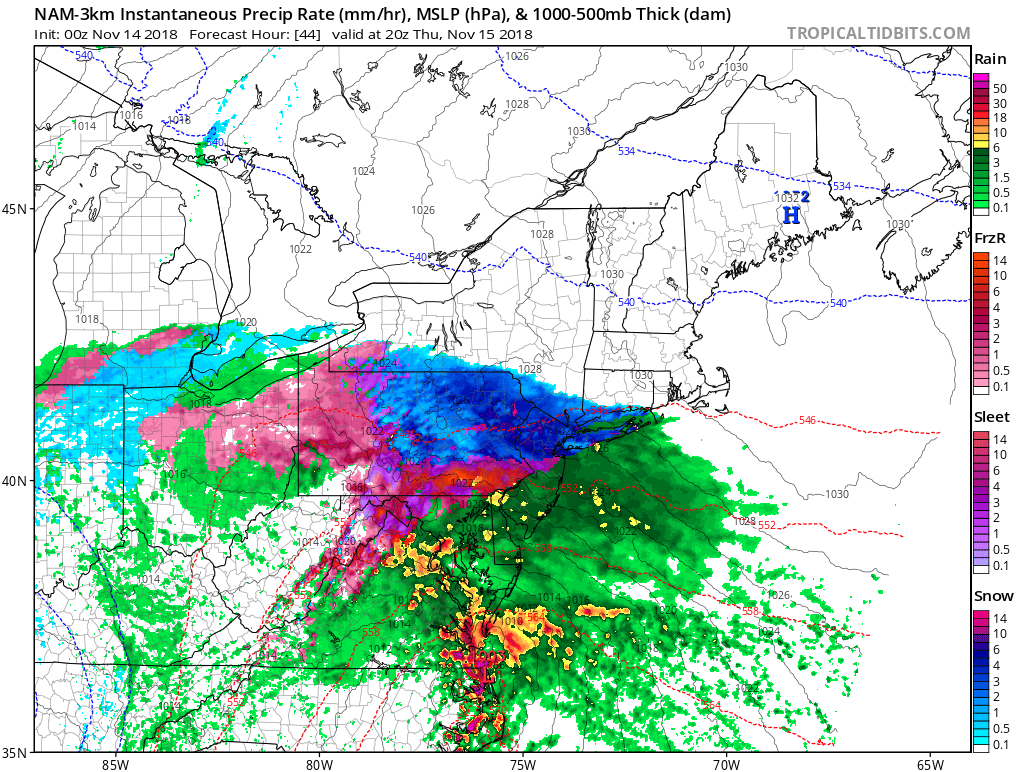 This is the first Weather 360 forecast made with the aid of a new forecasting algorithm tailored to the NYC Metro Area. Updated as of 8 pm ET Tuesday, November 13, 2018.