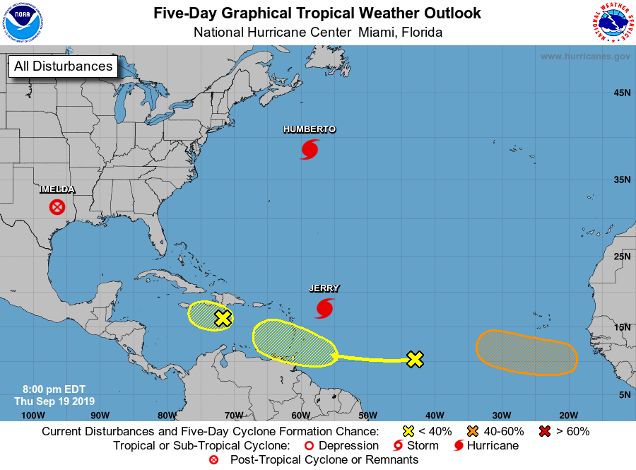 For more information regarding the impacts of Imelda, please visit http://www.weather.gov. For more information regarding the progress of Hurricanes Jerry and Humberto, as well as the three noted areas of potential development, please visit http://www.nhc.noaa.gov.